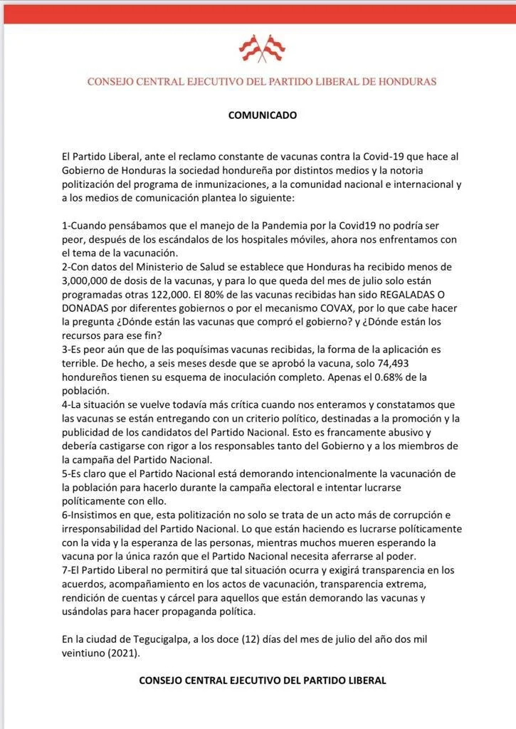 Comunicado sobre las vacunas del COVID